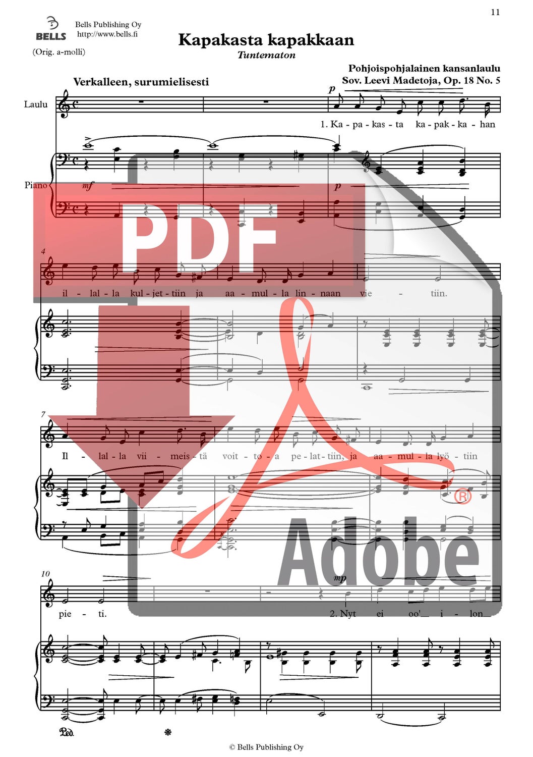 Trad. (Arr. Leevi Madetoja): Kapakasta kapakkaan, Op. 18 Nr. 5
