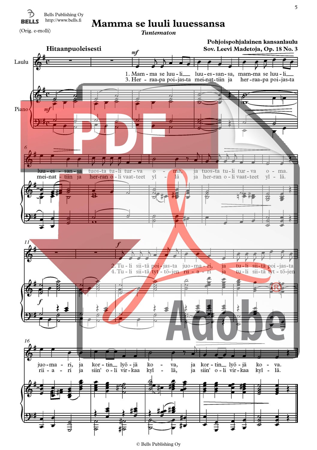 Trad. (Arr. Leevi Madetoja): Mamma se luuli luuessansa, Op. 18 Nr. 3