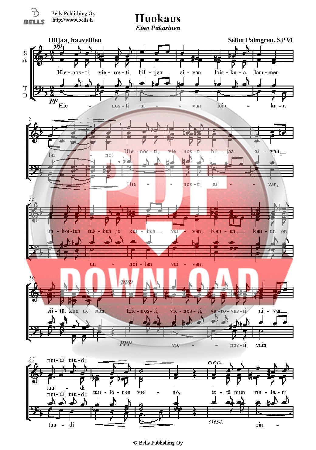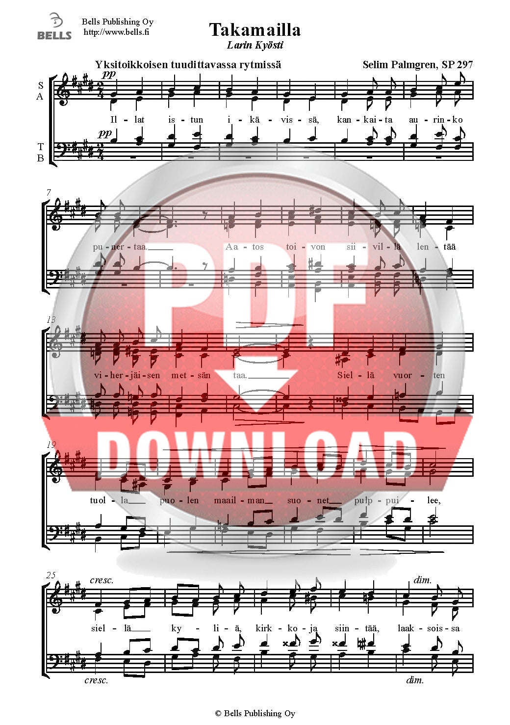 Palmgren, Selim: Polku, SP 278 (Gemischten Chor)