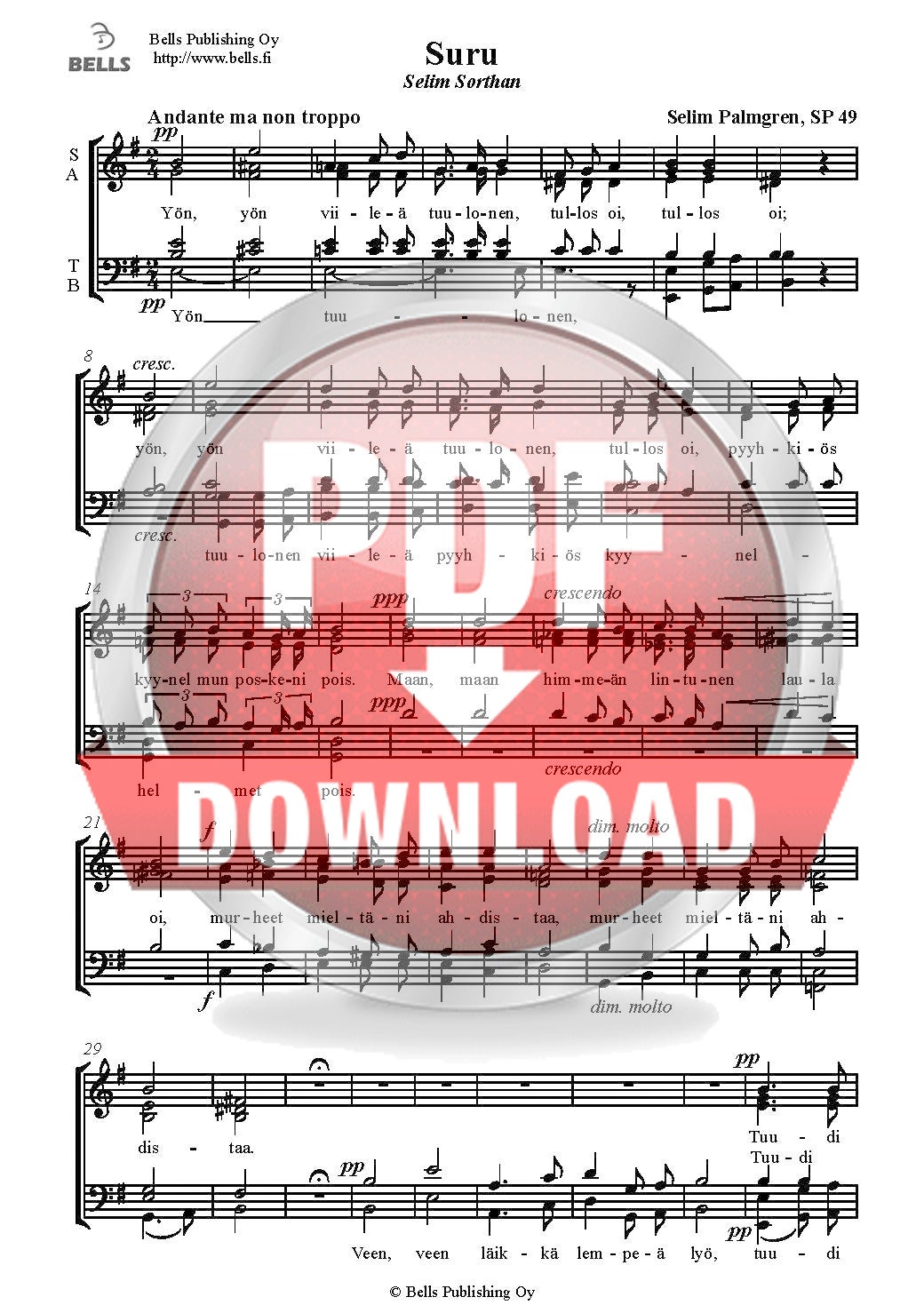 Palmgren, Selim: Surren laulelen, Op. 20 Nr. 1 (Gemischten Chor)