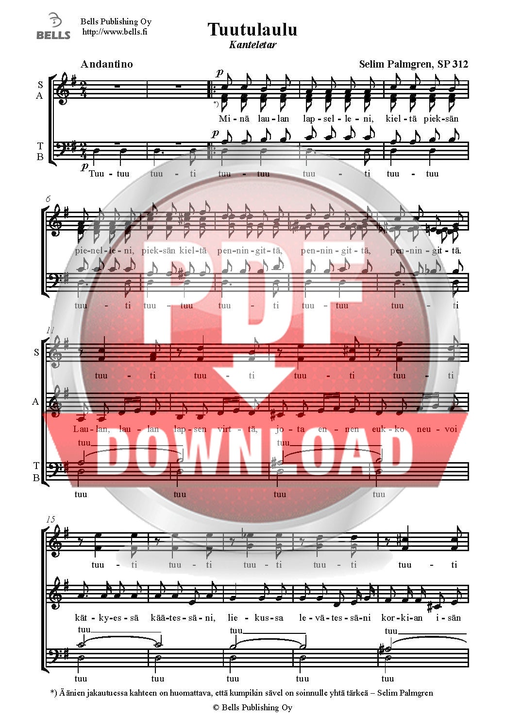 Palmgren, Selim: Tuutulaulu, SP 312